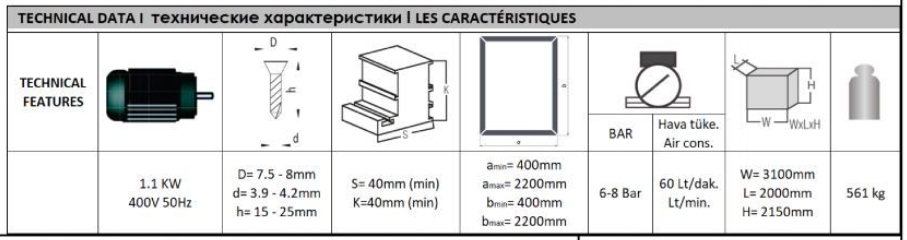 Equipada con cabezal de atornillado automático con alimentador, tornillos estándar PH2, con sistema láser para centrado de los mismos.