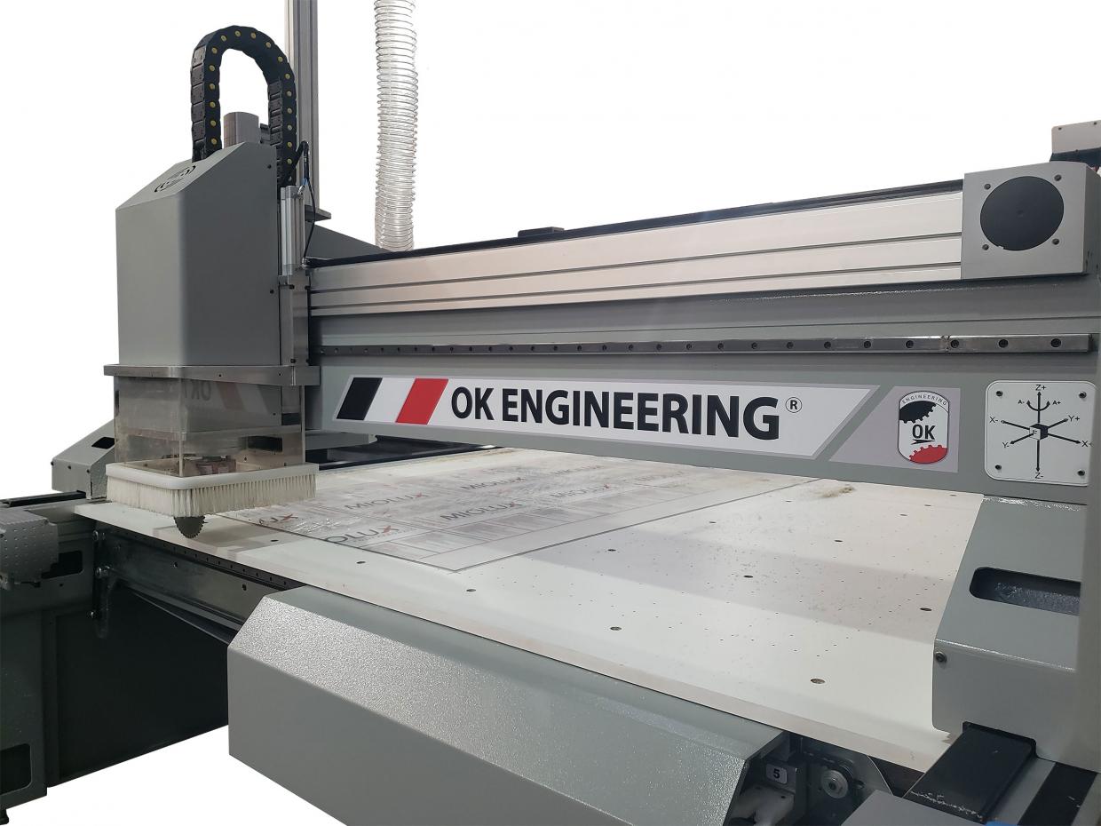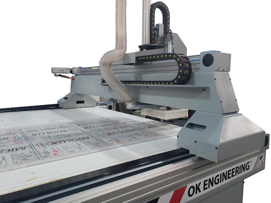 – Mesa de succión para sujetar la pieza: 3.100×2.100 mm, dividida en 6 zonas, con panel en MDF
