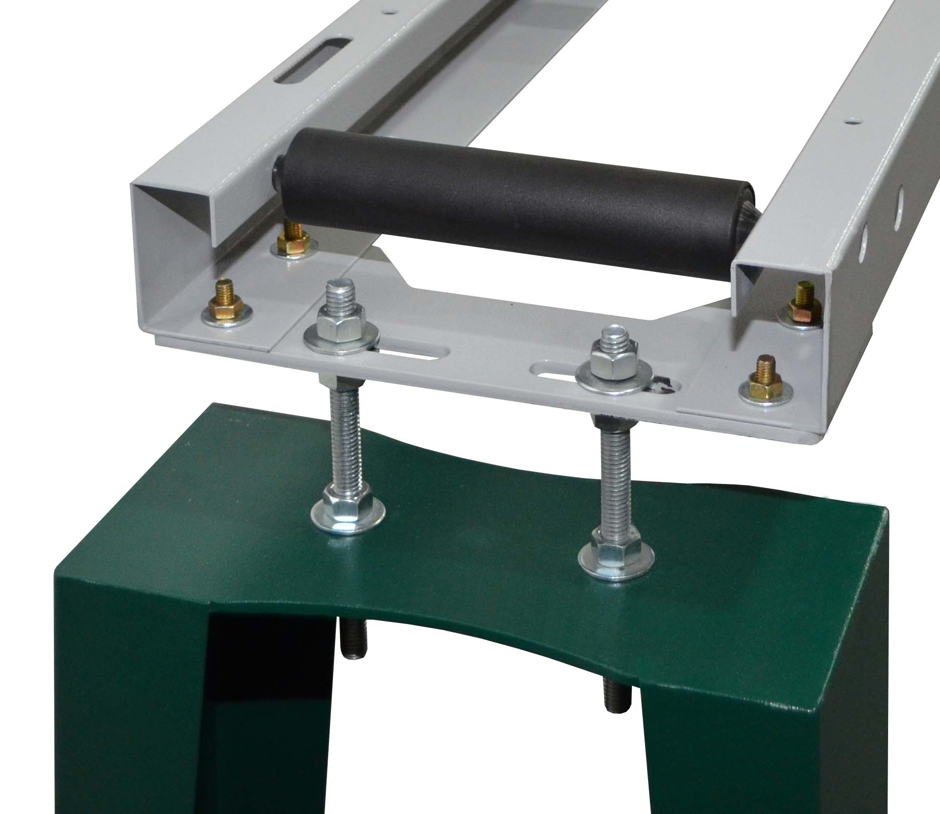 Denominada “Mesa de Salida”. Incluye tope registrable con regla de medición. 4 mts. en total y medición útil aprox. 3.7mts. Posee rodillos de plástico de alto impacto inyectados para la protección del perfil.